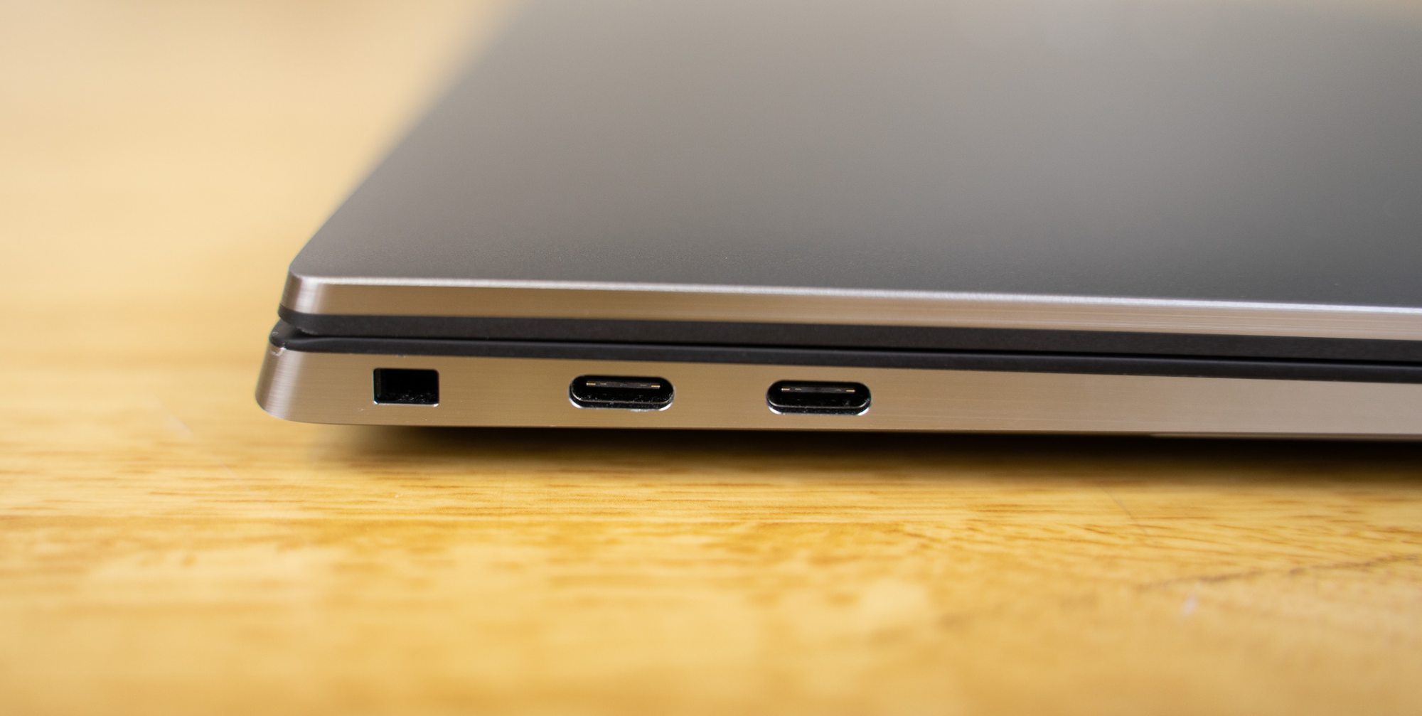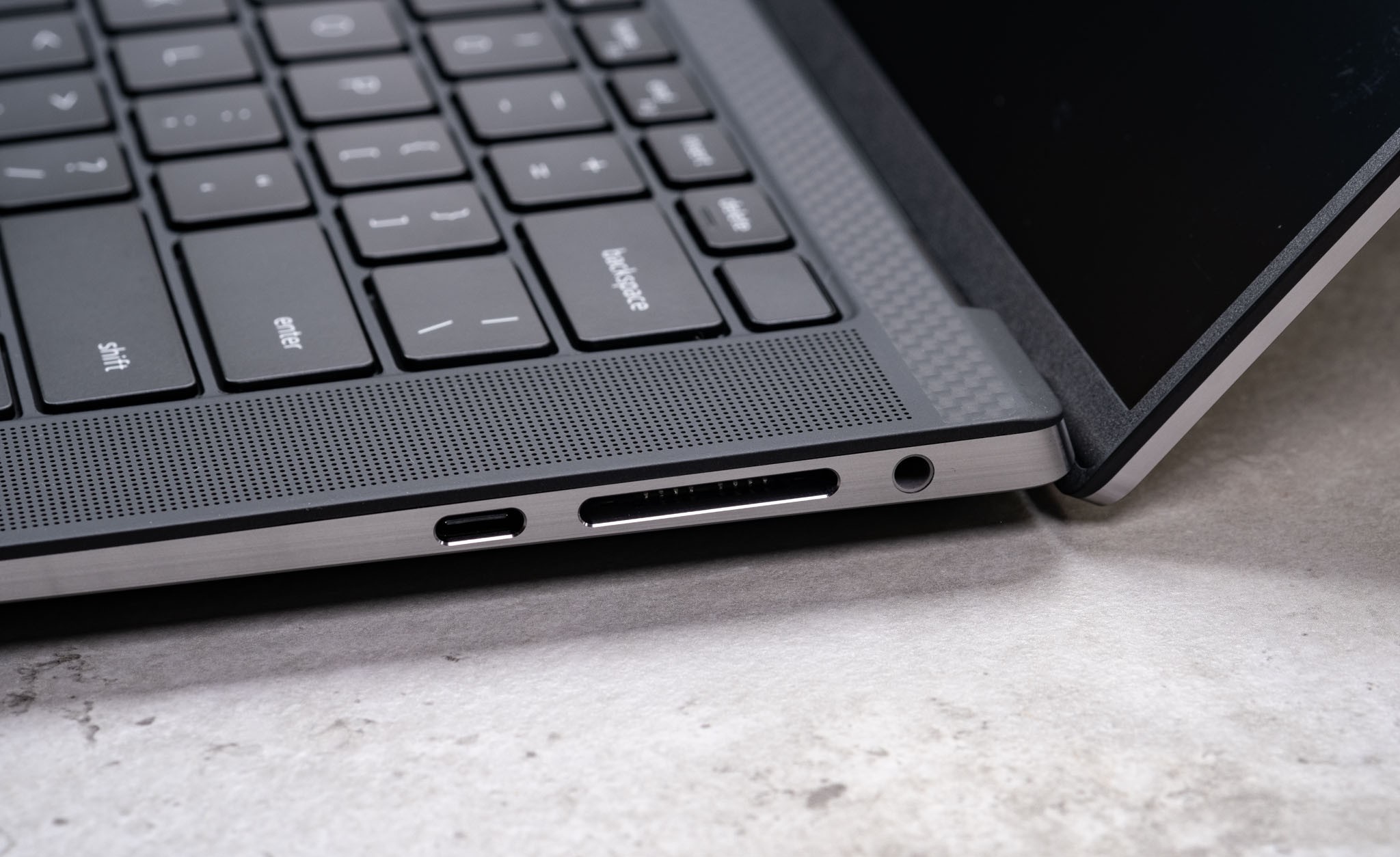 Đây vô tình là một điểm trừ cho chiếc máy này. Máy được trang bị 3 cổng USB Type C 3.2 Gen 2, tuy nhiên chỉ có 2 cổng cạnh trái máy là hỗ trợ Thunderbolt 3, còn cổng bên cạnh phải chỉ hỗ trợ Power Delivery và xuất hình. Máy vẫn giữ jack tai nghe 3.5mm combo và 1 khe thẻ nhớ SD truyền thống. Tuy nhiên, điều người dùng cần trên một chiếc máy trạm lại là hệ thống cổng kết nối đa dạng, dồi dào, nên có vẻ thay hết sang cổng USB C sẽ gây khó khăn một chút.