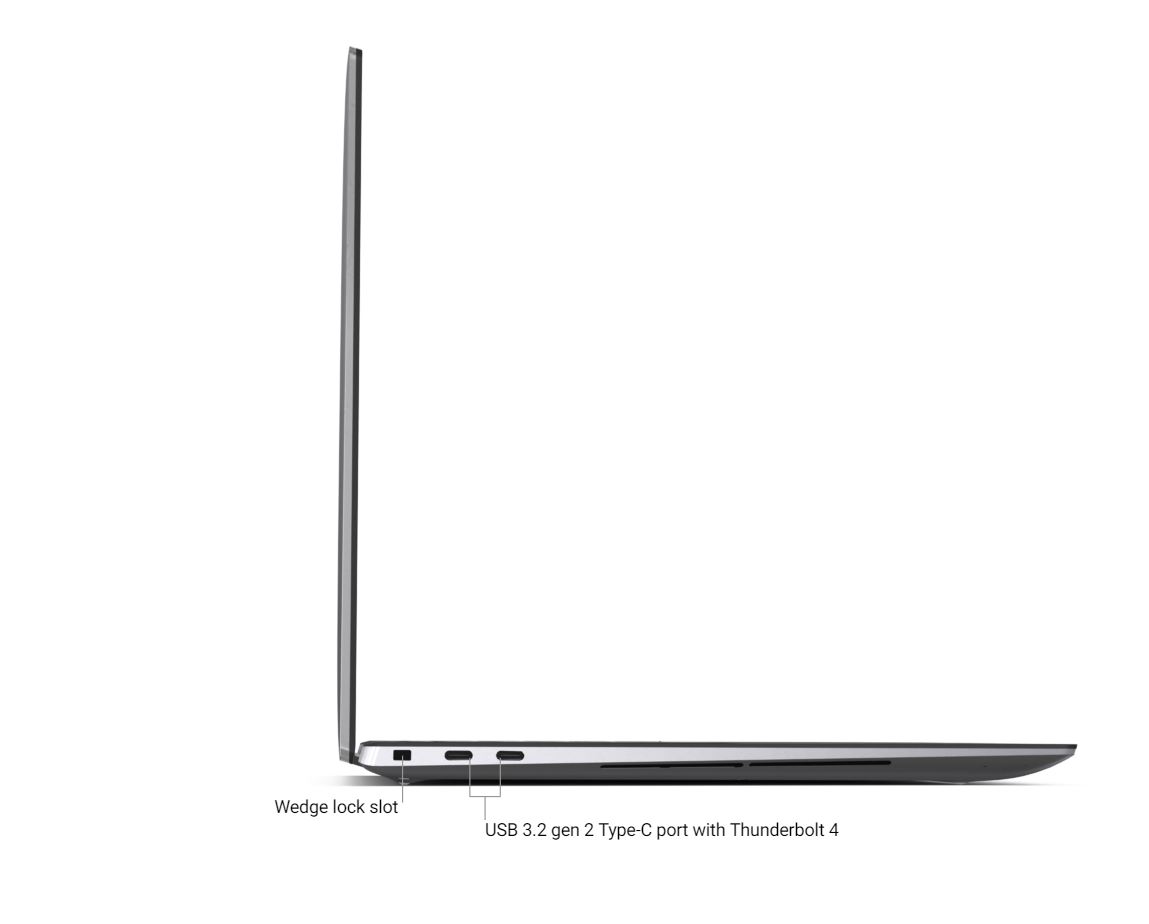 • 1. Cổng hiển thị USB 3.2 Gen 2 Type-C• 2. Đầu đọc thẻ SD kích thước đầy đủ• 3. Cổng âm thanh đa năng• 4. Khe khóa hình nêm• 5. (2) Cổng Thunderbolt 4.0 Type-C (1x Power Delivery)