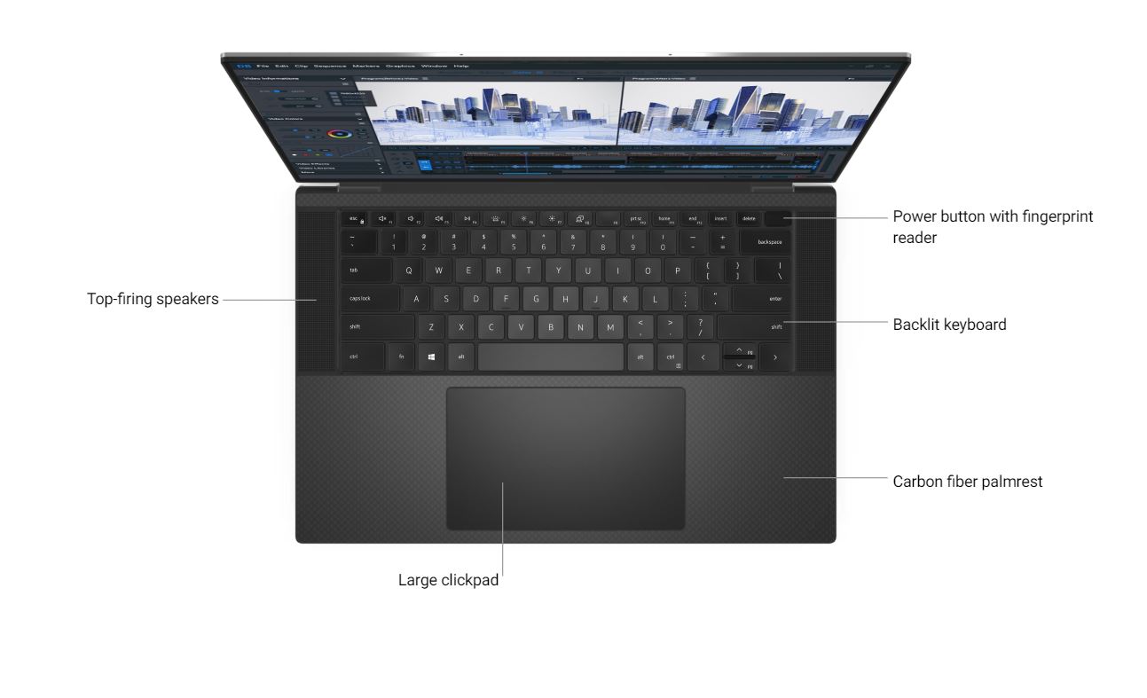 Dell Precision 5560 được thừa hưởng một thiết kế sang trọng, mỏng nhẹ và tinh tế đến từ dòng XPS. Với bộ khung máy được gia cố bằng hợp kim magnesium chắc chắn được phủ lớp sơn đen mờ, bề mặt phần chiếu nghỉ được làm bằng sợi carbon độc đáo, giúp hạn chế tối đa mồ hôi và dấu vân tay, giúp cho máy luôn luôn được giữ được vẻ ngoài bóng bẩy và sạch sẽ.